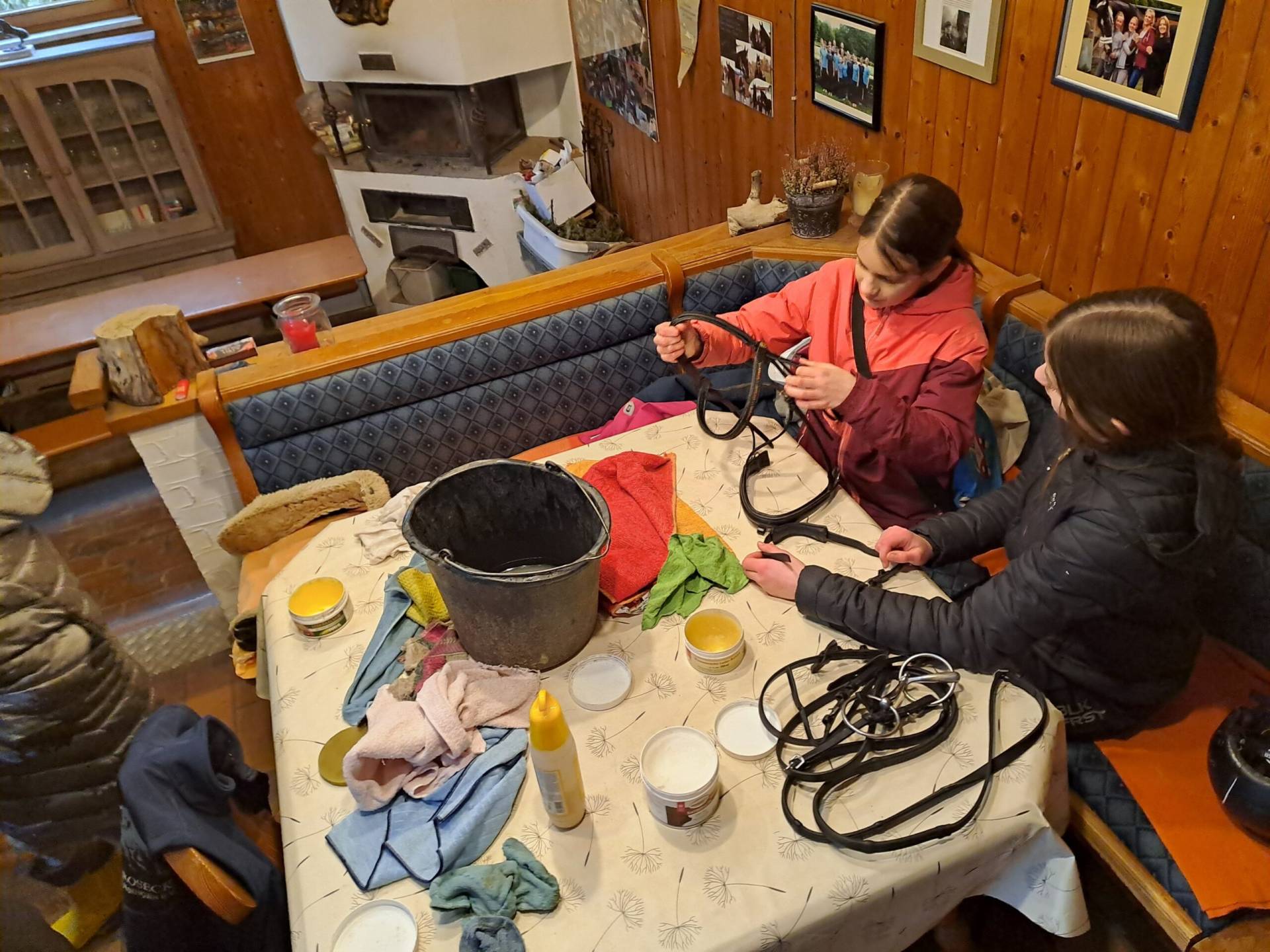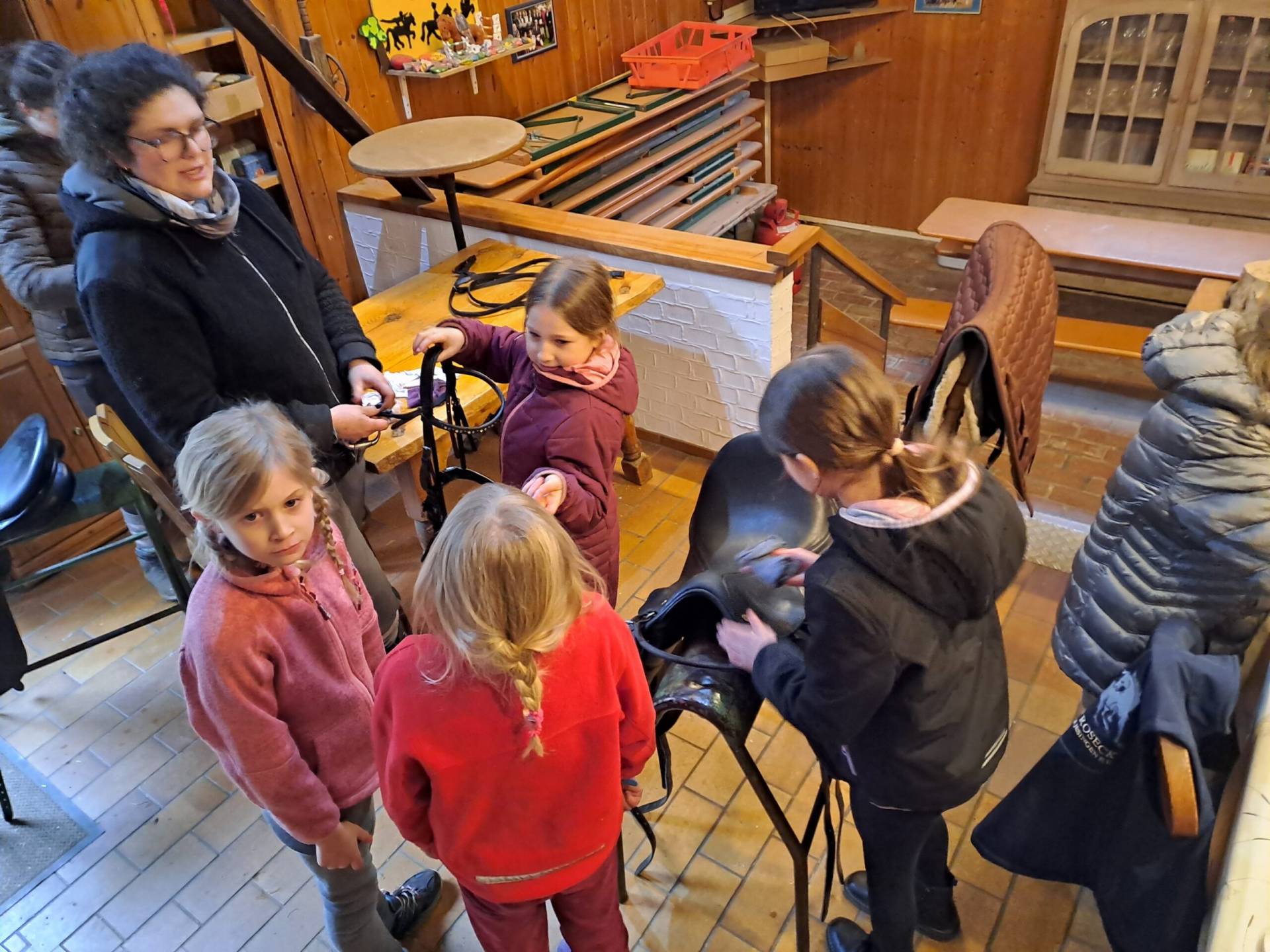 Etwas ausgepowert und zugleich erfüllt mit neuen Eindrücken stärkten sich alle mit feinen, mitgebrachten Muffins. Bis zum Abholen putzten wir dann noch ausgiebig die Sättel und Trensen der Lehrpferde sowie einige derzeit nicht gebrauchte Sättel.